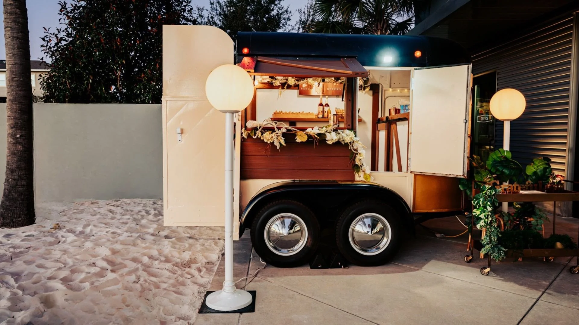 Our signature trailers are designed to elevate any event, transforming into a bar, food station, dessert display, coffee cart, or any concept you envision. With a unique aesthetic and versatile setup, they become both a functional service point and a standout design element within your celebration.